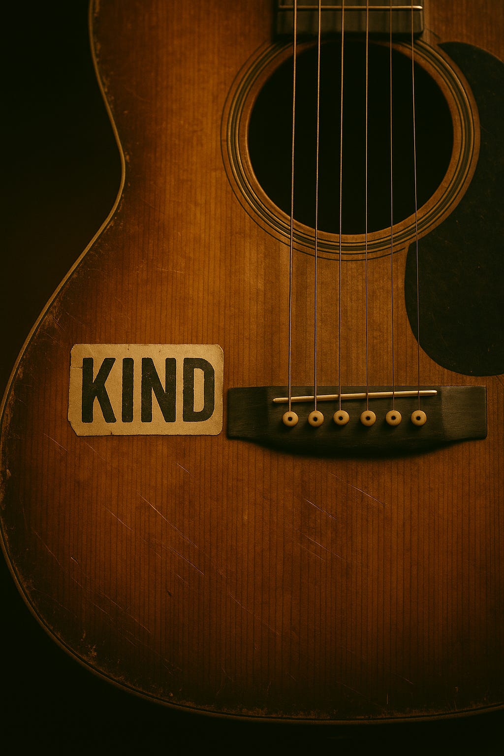 That night I took out my guitar. I played the refrain until it frayed. The sticker on the case has peeled further. It reads only KIND now, which feels less like a command and more like a compass.